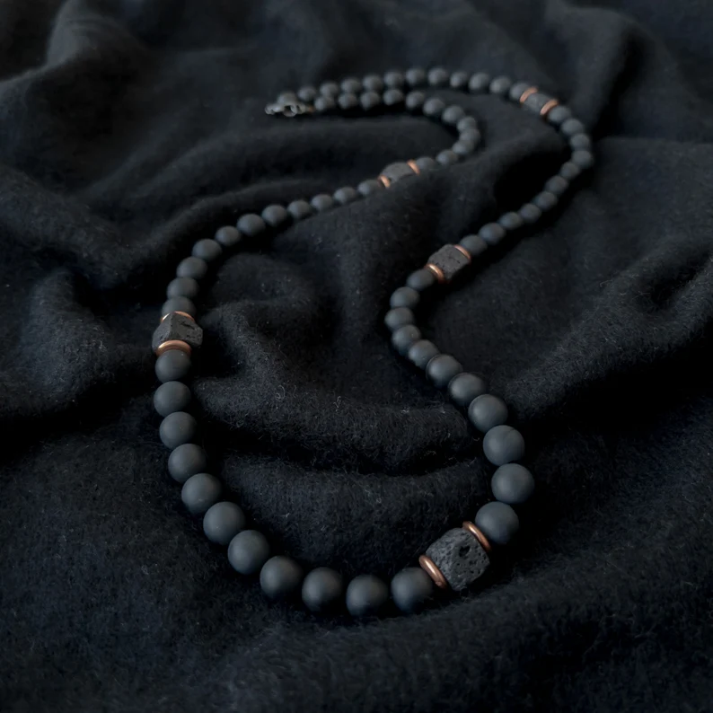 Mens Necklaces • Mens Jewelry • Matte Black Onyx Necklace • Cube Lava Necklace • Beaded Necklace for Men • Boho Style • Gemstone Necklace
