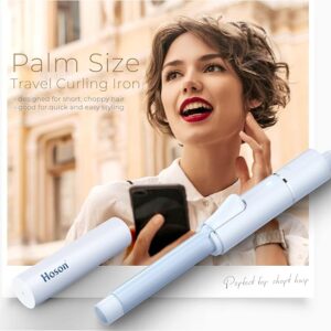 Ceramic 3/4 Inch Mini Curling Iron for Short Hair, Small Hair Curler Iron for Travel, Dual Voltage Curling Wand for Worldwide Trip(Baby Blue)