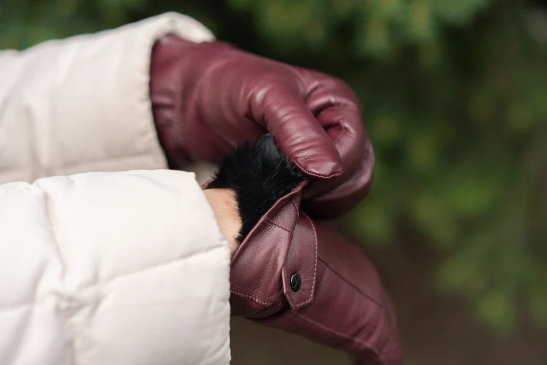 Be the first to review “Women’s RABBIT FUR lined Gloves – WINE – hairsheep leather – size 6.5” Cancel reply